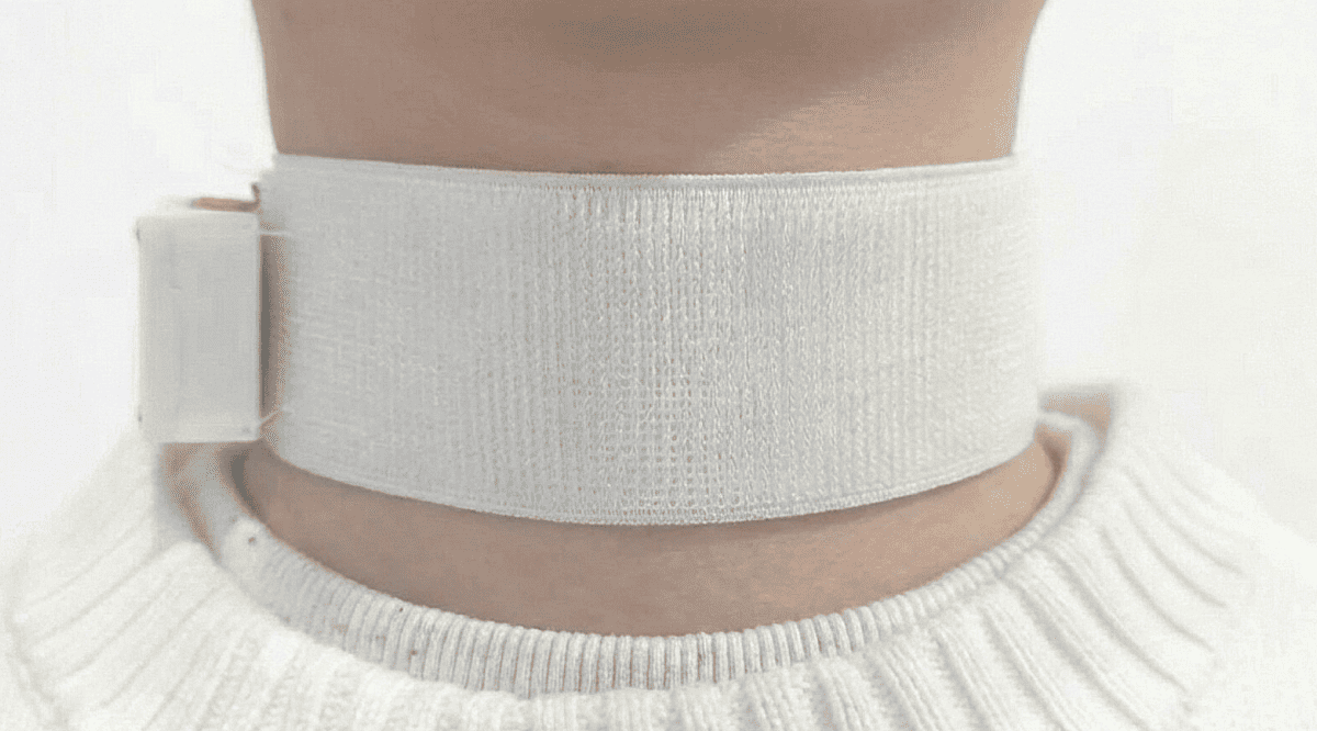 Пристрій Revoice виконаний у формі намиста з тканини, що надягається на шию. Він складається з текстильної основи з вбудованими надчутливими датчиками та двох систем штучного інтелекту. Крім того, його можна прати, як звичайний одяг. Датчики фіксують вібрації м'язів гортані під час беззвучних рухів губ та вимірюють частоту серцевих скорочень людини. Ці дані передаються на обробку двом системам на основі ШІ, що працюють у режимі реального часу: перша — аналізує рухи гортані та визначає, які слова вимовляє людина без звуку; Прискорене серцебиття система розпізнає, як стрес й на основі цих даних штучний інтелект доповнює короткі фрази до розгорнутих речень, що відповідають ситуації та настрою людини. У випробуваннях взяли участь п'ять пацієнтів із дизартрією після інсульту. Під час них пристрій показав низький відсоток помилок. Коли один з пацієнтів беззвучно промовив фразу "Ми їдемо до лікарні" — Revoice розширила її до повного речення з уточненням причин поїздки. Наразі він перебуває на стадії прототипу та потребує додаткових випробувань. | |